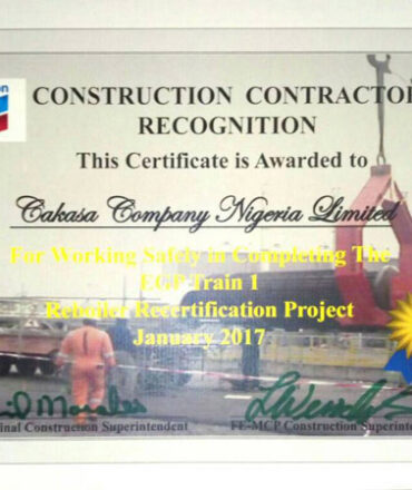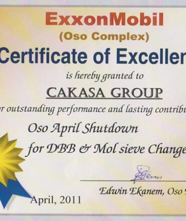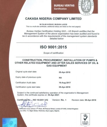 A trailblazer in the country’s oil and gas sector, CAKASA was one of the first indigenous companies to be ISO 9001:2000 certified, currently ISO 9001:2015 certified. We are now introducing ISO 14000 requirement into all our processes.
